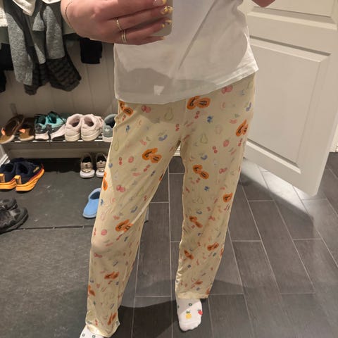 To siste bilder tatt av meg. Se de aller siste, som viser merke/ hull. (Det er nederst baksiden av bena på buksen).
