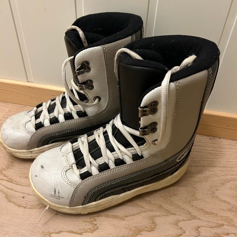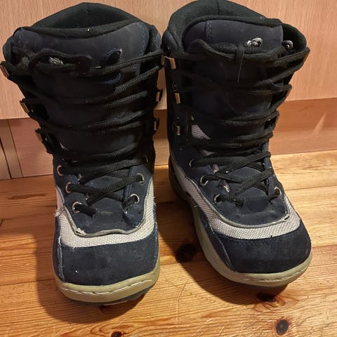 Maxdrive snowboardstøvler i størrelse 39, med blå og grå farge. Støvlene har solide såler med godt mønster for grep. Materialet er slitesterkt og egnet for snowboardbruk.