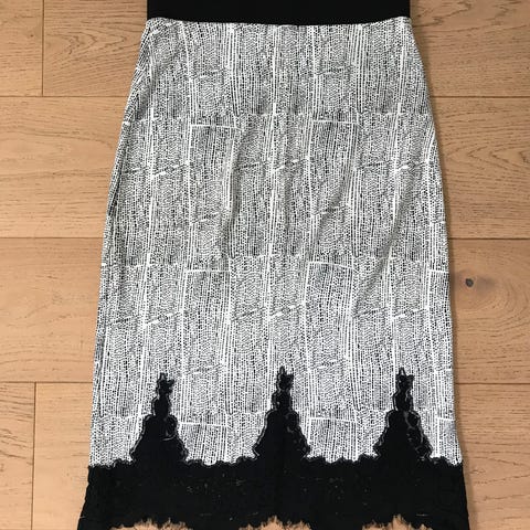 H&M skjørt i størrelse S, hvit farge, Skjørtet har et mønster med tekstur og en glidelås i siden.