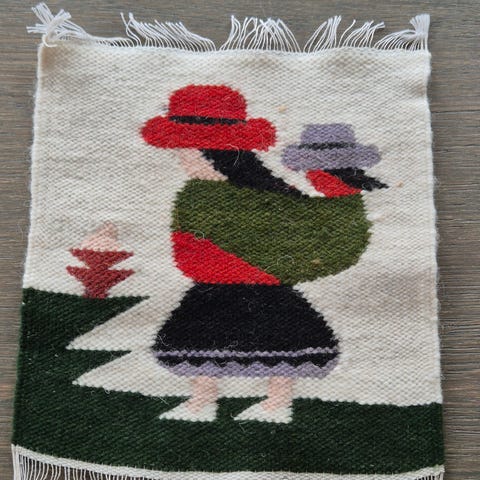 "dobbelsidig" vevd bilde,vevd med tynn ulltråd.