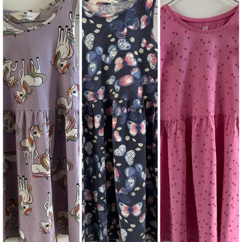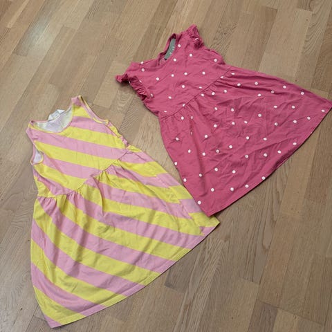 To pent brukte sommerkjoler/hverdagskjoler i fine fargerike mønstre. Størrelsen er 122/128. Den ene er fra Cubus og den andre fra H&M.
