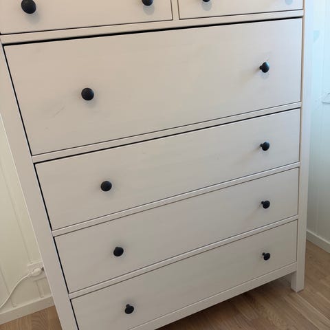 Ikea hemnes kommode med 5 skuffer selges. Alle skuffer fungerer tipp topp. Smal, solid og romslig kommode