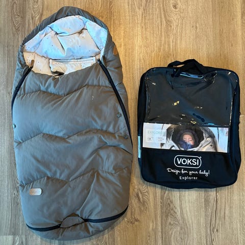 En snor rundt hodeområde kan bli justert til å passe barnets behov og preferanser i ulike værforhold. Sideåpningene gir mulighet til å brette ned fronten og gi best mulig ventilasjon og god oversikt når barnet sitter i vognen og vil følge med rundt seg. Posen kan deles i to og bakdelen kan brukes som et underlag i vogn og som et leketeppe. Den unike utformingen av ryggåpningene gjør at denne posen lett kan monteres og brukes i bilseter og vogner med ulike seler. Anti-skli materiale i ryggen gjør at posen holder seg på plass i vognen. I bruk med et bilsete som bilstolpose, gir Voksi® Explorer den isoleringen som erstatter tykke ytterklær. På denne måten kan selene i bilsetet sitte tettere på babyens kropp. Glidelåsen er «quick relase» noe som gir lett tilgang på barnet i bilstolen. Voksi® Explorer har blitt kollisjonstestet i kombinasjon med BeSafe bilseter i den anbefalte bakovervendte posisjonen.»