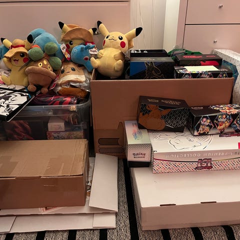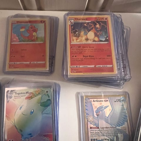 - charizard ex Special Collection: Innholder promokort og 5 booster pakker, bla surging sparks, journey together og paradox rift.