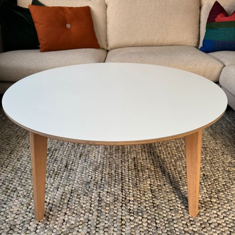 Selger et Jakobsfors rundt sofabord fra Ikea i eikefinner. Ingen synlige merker. Hentes.