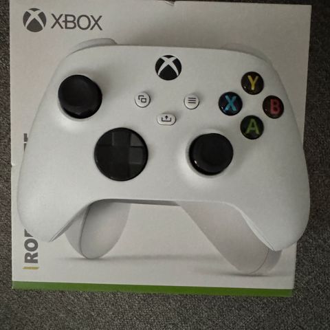 Microsoft Xbox trådløs kontroller i svart og hvit farge. Kontrollerne har standard knappoppsett for Xbox og er beregnet for trådløs bruk med Xbox-konsoller.