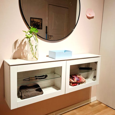 Bestå oppbevaringsmøbel brukt som tv-benk selges. Brunsvart med petroleumsblå dører. Står på 1 cm høye knotter. Nypris 1524,- med knotter og dører. Selges 600,- da den har et par riper på toppen som ikke vises særlig godt.