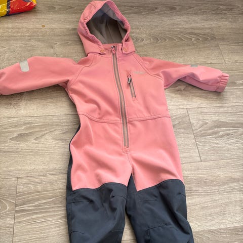 Veldig fin vinterdress fra Wheat. Brukt i to sesonger men har masse bruk igjen. Den har noen flekker, og litt slitt i rumpa og knærne. Mangler også en knapp for å feste gummistrikk, men det kan repareres fort.