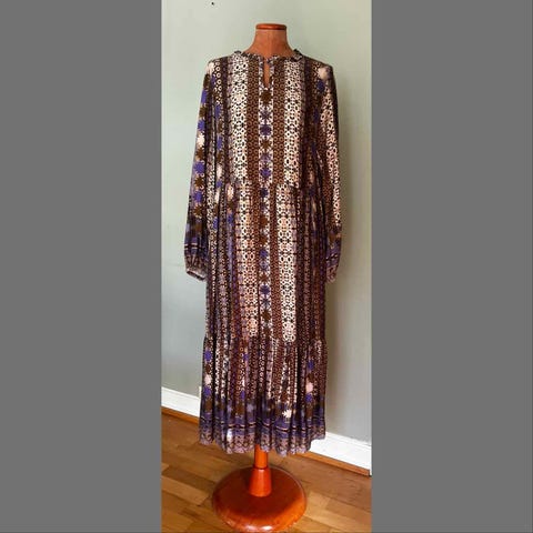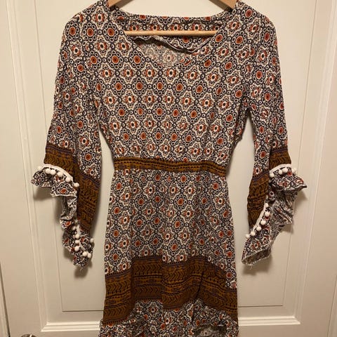 Lang figurnær mønstrete kjole i bohem stil. Strl S. Helt ny