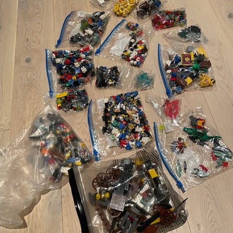 Nb! Tar forbehold om at det kan forekomme bruksmerker og/eller fargeendringer på klosser. Settet er ca 40 år gammelt og er lekt med på