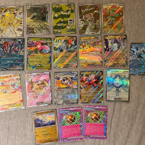 En hel rekke Pokémon-kort for en rimelig penge. Her er det førstemann til møllen. Alle kortene er lagt i sleeve og toploader med engang dem kom ut av pakken. Frakt går på kjøper sin regning. For kjøp av flere kort kan vi fikse en rabatt.