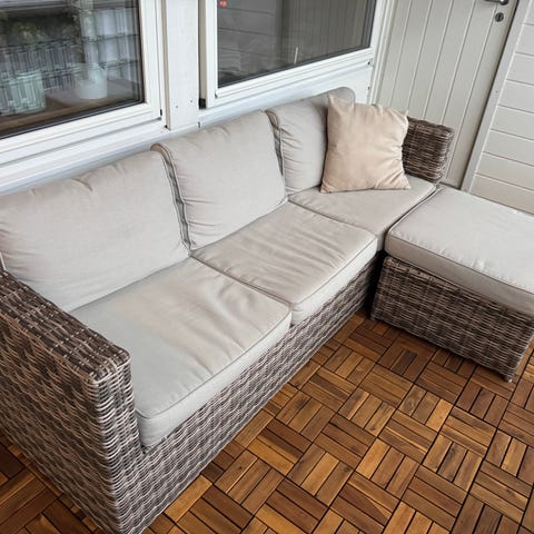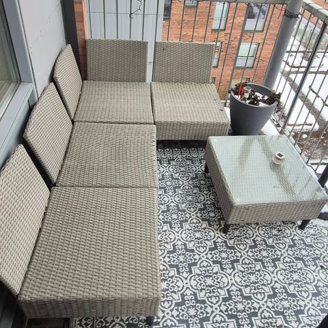Størrelsen passer perfekt for en liten familie på 2-4 personer, og møblene passer fint selv på en liten balkong.