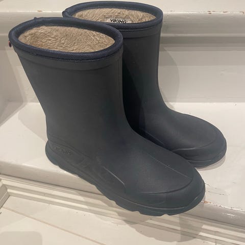 Viking barnestøvler i størrelse 35, designet for unisex bruk. Støvlene er svarte og har en slitesterk konstruksjon som egner seg for utendørs bruk. Materialene er valgt for å gi beskyttelse og komfort under ulike værforhold.