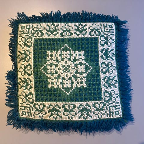 Vintage Håndlaget Brodert Pute 38x38 cm