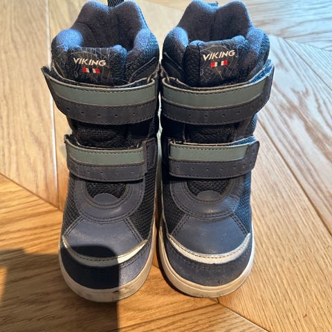 Viking barnesko for unisex, størrelse 27. Skoene er har borrelåsfeste for enkel justering og påsetting. Materialet fremstår som slitesterkt og egnet for utendørs bruk.