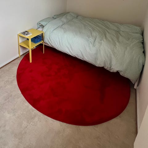 Den myke, lave luggen handler om komfort, kombinert med milde farger og en lett glans som gir rommet harmoni. Stort den tykke luggen skjuler kantene.
