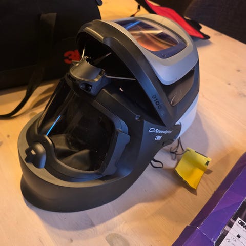 Sveisehjelm med friskluft Adflo system . I settet ekstra luft filter,tynt batteri/4-6 arbeidstid/, lader oppbevaringspose .