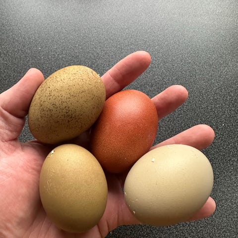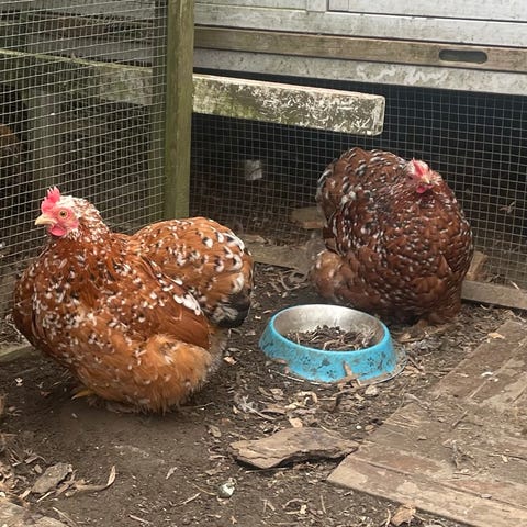Mødre brun og hvit lohman. Fedre brun lohman og renraset cream legbar.