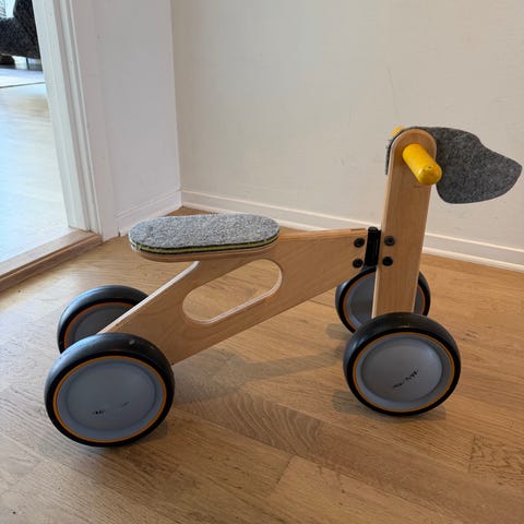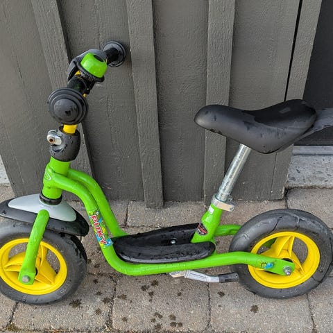 Puky løpesykkel / gåsykkel. Sykkelen er pent brukt og med noen veldig få unntak bare brukt innendørs. Designet for små barn som lærer å balansere og sykle.