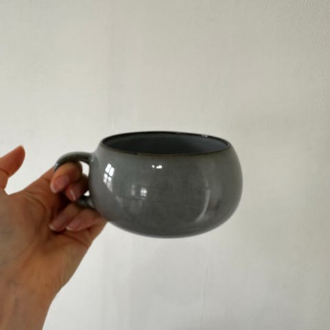 Fine ubrukte kaffekopper. Beige med mørkebrun ‘freckles’. 38cl.