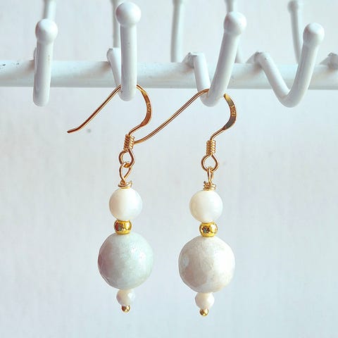 Delikate og lette øredobber inspirert av nordisk stillhet og lys. Frostet glass i nyanser av pudderrosa og melkehvit, kombinert med en liten perle og gyldne detaljer, skaper en subtil og feminin helhet.