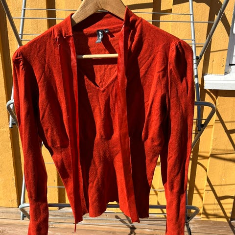 Fin genser i varm, rust/oransje farge.