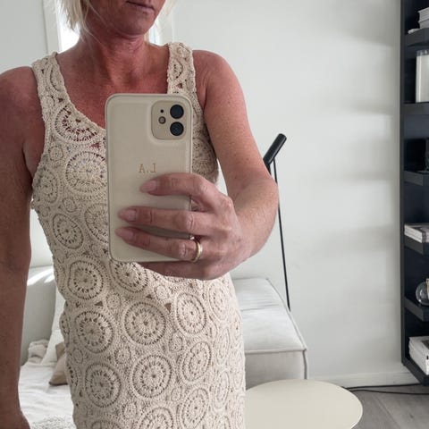 Sommerlig hvit heklekjole fra Stradavarius i strl. M
