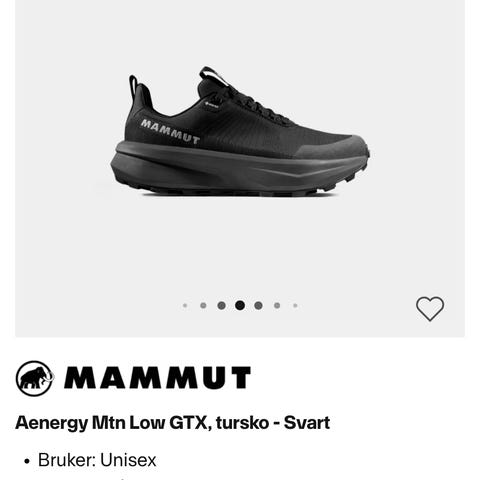 Er som ny. Brukt 1 gang. Feil str. Svarte mammut ensi mid gtx women. Str 40 2/3. Vanntett gore-tex.