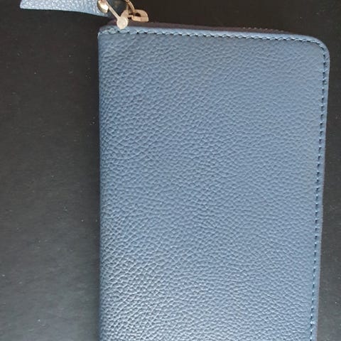 Lommebok i ekte lær/ skinn. Farge svart. Mål: 9,5cm×12,5cm. I utbrettet tilstabd er lengden 27cm. Mange praktiske lommer. Veldig pen nærmest som ny.
