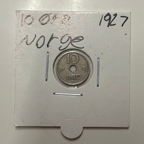 Norges første 10 øre / 3 skilling i noenlunde fin stand.