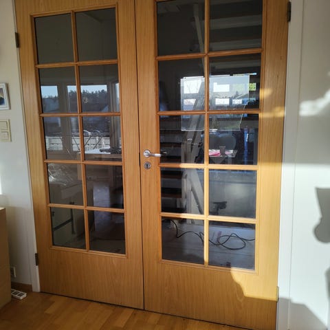 Selger to vitrinedører til Bestå fra Ikea.