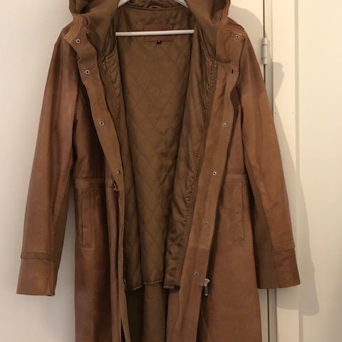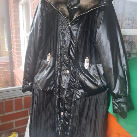 Modellen på bildene bruker størrelse M, derfor ser jakken litt stor ut på henne. For en person med størrelse XL eller L vil jakken passe godt.