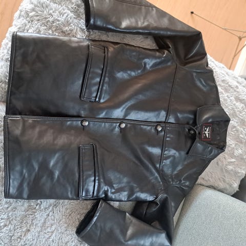 Selges: helt ny og varm jakke i kunstskinn.