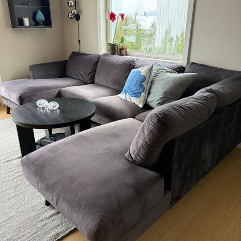 Sofaen er god og sitte i. Den er vel brukt, men mye bruk igjen. Den er nå demontert og klar for henting.