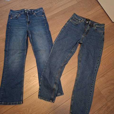 Jeans str M. Hel og fin med unntak av litt slitasje ved begge baklommer, se bilder. Mye bruk igjen, selges derfor billig.