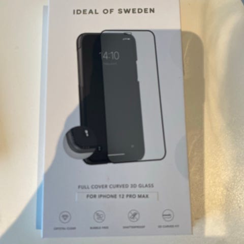IDEAL OF SWEDEN skjermbeskytter. Produktet er designet for å beskytte telefonen og tilpasset for iPhone 12/12 Pro.