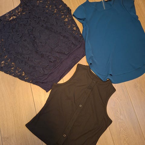 Topp med mønster/blonder. Str 40/42.