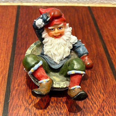Hedlund nissefigurer for juledekorasjon. To figurer med tradisjonell rød lue, blå bukser og røde klær. Laget i porselen, egnet for innendørs bruk i julen. De kan også bære en flaske på ryggen. Ingen nag eller skader bare spor av underlag. 13 x 9 cm. Selges for kr 200 pr stk. Kan hentes i Stavanger eller sendes mot porto.