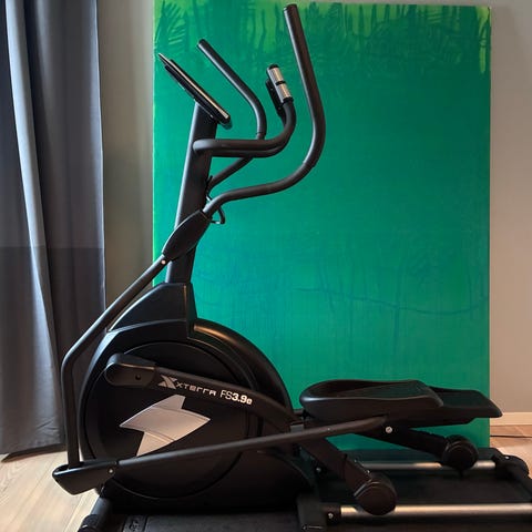 Xterra FS3.0 ellipsemaskin i svart farge. Utstyrt med digitalt display som viser tid, distanse, hastighet og kaloriforbruk. Maskinen har flere treningsprogrammer og justerbare motstandsnivåer.