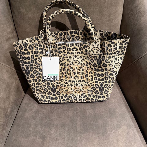 Ganni Stoff pc veske leopardmønster