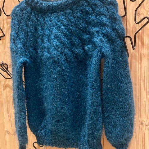 Dale of Norway genser i ull, flerfarget, størrelse S for dame. Stor i størrelsen, litt oversized. Genseren har tradisjonelt mønster og er laget av ullmateriale som gir isolasjon og varme. Innerfor for vindbeskyttelse.