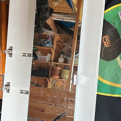 Pent brukt garderobeskap brukt i gangen, ingen skader! Selges med skuffer, garderobestang og hylle.