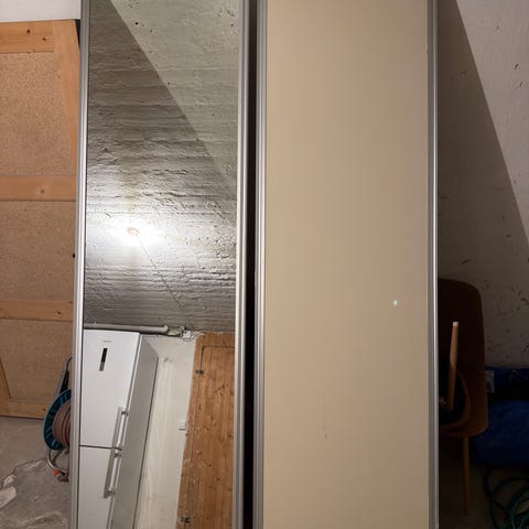 Vi skal pusse opp soverommet og gir derfor bort til første som kan hente. Speildøra er tung.