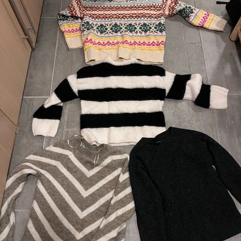 Høyhalset og lang genser. Kan evt benyttes som kjole. Varm og behagelig. Str xs. Genseren er brukt for noen år siden og er noe nuppete langs ermene.