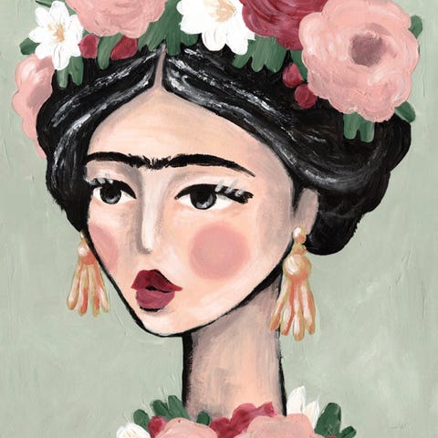 Kahlo in Green poster i sort ramme. Poster er 40x50, for ramme se mål på bilder.