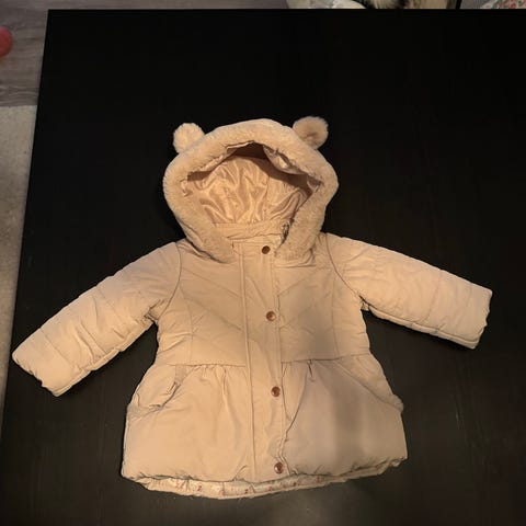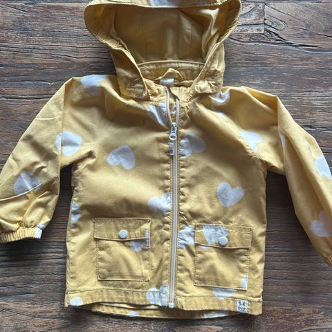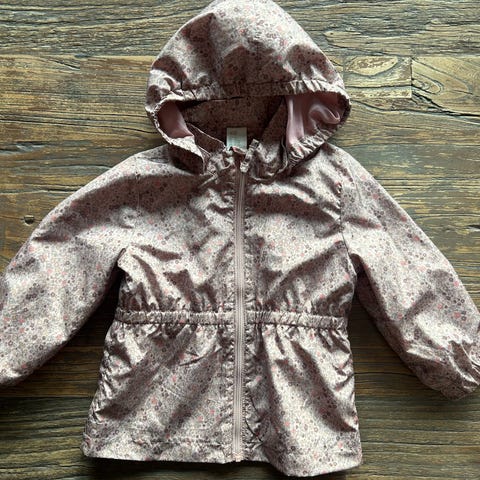 H&M jakke i størrelse 86 for jente. Jakken er grå og laget av bomull. Den har hette og lommer, og er egnet for barn.