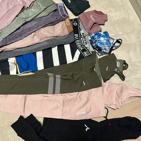 Selger en stor og variert treningspakke med pent brukte plagg, alt i god stand.