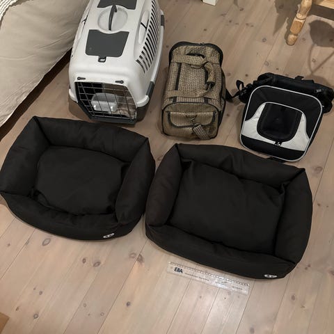 Bilseng til hund. Str. S. (70x55). Passer for liten hund, eller til valp. Vår Springer spaniel brukte denne i baksetet på bilen til den var 8 mnd.