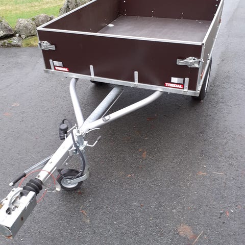 Tilhenger med alumiums dørkplate og tre karmer 35 cm over originale karmer. Drag kan dras ut første avstand fra kule 35cm, 90cm, 125cm og 154cm. Lastekasse er 1500 mm bred og 2000mm lang. Innvendige stroppe fester. Nye dekk og stødempere for 8 årsiden, er koblet på 13 pins kotakt så er bilen 7 pin må der settes på adapter. Totalvekt 610kg tilhenger veier 160kg nyttelast 450kg, 1979 mod må hentes i Egersund , gi bud.