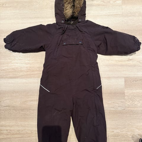 Fin regndress fra Kattnakken i str 92. Den er godt brukt og noe misfarget på jakken, men fortsatt veldig fin og masse bruk igjen :) Jeg har ikke kunnet finne noen hull, og det er stropper på begge beina.